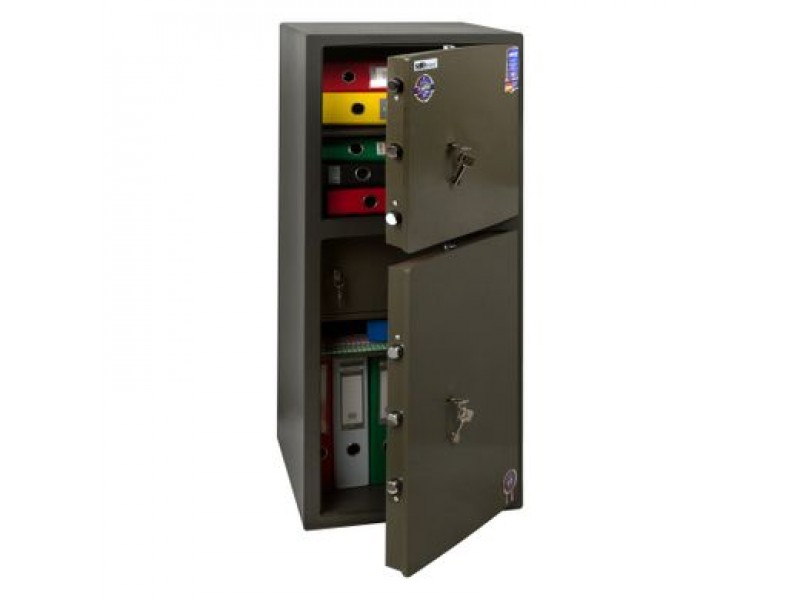 Стійкість до злому - EuroVDS (Німеччина), CSN - 9160010 (Чехія), клас 1. Товщина корпусу 20мм (сталь 3 мм - термостійкий наповнювач SMREKOLIT 14мм - сталь 3 мм), двері - 10 мм (передня панель), загальна товщина дверей - 49мм. Захист замку від висвердлювання і ригелів від вибивання, захищена 3мм пластиною з високолегованої марганцовістойсталі, яка практично не піддається механічній обробці. Можливість кріплення сейфів до стіни (два отвори Ø 12мм), до підлоги (два отвори Ø 16мм). Поліуретанові покриття (стійке до механічних пошкоджень), колір - оливковий. 3-х стороння ригеля замикання (5 активних ригеля, що обертаються - діаметром 22 мм).