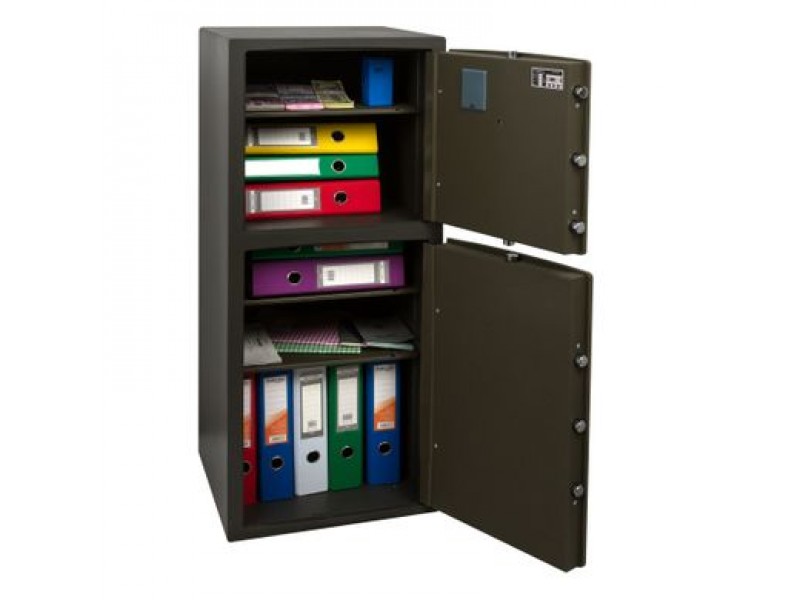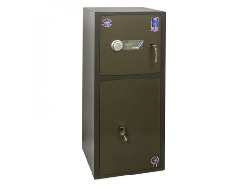 Стійкість до злому - EuroVDS (Німеччина), CSN - 9160010 (Чехія), клас 1. Товщина корпусу 20мм (сталь 3 мм - термостійкий наповнювач SMREKOLIT 14мм - сталь 3 мм), двері - 10 мм (передня панель), загальна товщина дверей - 49мм. Захист замку від висвердлювання і ригелів від вибивання, захищена 3мм пластиною з високолегованої марганцовістойсталі, яка практично не піддається механічній обробці. Можливість кріплення сейфів до стіни (два отвори Ø 12мм), до підлоги (два отвори Ø 16мм). Поліуретанові покриття (стійке до механічних пошкоджень), колір - оливковий. 3-х стороння ригеля замикання (5 активних ригеля, що обертаються - діаметром 22 мм).