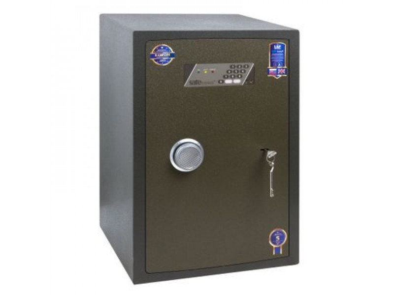 Стійкість до злому - EuroVDS (Німеччина), CSN - 9160010 (Чехія), клас 1. Товщина корпусу 20мм (сталь 3 мм - термостійкий наповнювач SMREKOLIT 14мм - сталь 3 мм), двері - 10 мм (передня панель), загальна товщина дверей - 49мм. Захист замку від висвердлювання і ригелів від вибивання, захищена 3мм пластиною з високолегованої марганцовістойсталі, яка практично не піддається механічній обробці. Можливість кріплення сейфів до стіни (два отвори Ø 12мм), до підлоги (два отвори Ø 16мм). Поліуретанові покриття (стійке до механічних пошкоджень), колір - оливковий. 3-х стороння ригеля замикання (5 активних ригеля, що обертаються - діаметром 22 мм).