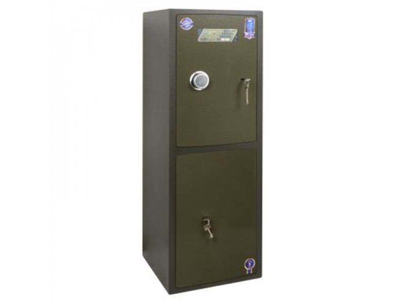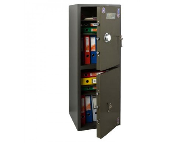 Стійкість до злому - EuroVDS (Німеччина), CSN - 9160010 (Чехія), клас 1. Товщина корпусу 20мм (сталь 3 мм - термостійкий наповнювач SMREKOLIT 14мм - сталь 3 мм), двері - 10 мм (передня панель), загальна товщина дверей - 49мм. Захист замку від висвердлювання і ригелів від вибивання, захищена 3мм пластиною з високолегованої марганцовістойсталі, яка практично не піддається механічній обробці. Можливість кріплення сейфів до стіни (два отвори Ø 12мм), до підлоги (два отвори Ø 16мм). Поліуретанові покриття (стійке до механічних пошкоджень), колір - оливковий. 3-х стороння ригеля замикання (5 активних ригеля, що обертаються - діаметром 22 мм).