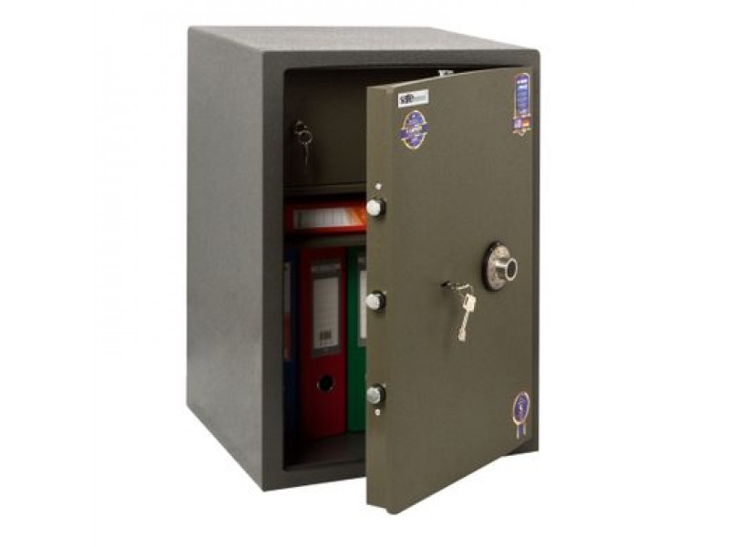 Стійкість до злому - EuroVDS (Німеччина), CSN - 9160010 (Чехія), клас 1. Товщина корпусу 20мм (сталь 3 мм - термостійкий наповнювач SMREKOLIT 14мм - сталь 3 мм), двері - 10 мм (передня панель), загальна товщина дверей - 49мм. Захист замку від висвердлювання і ригелів від вибивання, захищена 3мм пластиною з високолегованої марганцовістойсталі, яка практично не піддається механічній обробці. Можливість кріплення сейфів до стіни (два отвори Ø 12мм), до підлоги (два отвори Ø 16мм). Поліуретанові покриття (стійке до механічних пошкоджень), колір - оливковий. 3-х стороння ригеля замикання (5 активних ригеля, що обертаються - діаметром 22 мм).
